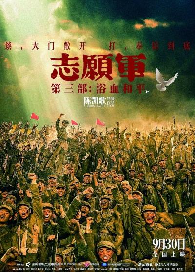 陈凯歌执导的《志愿军》三部曲收官之作——《志愿军:浴血和平》,讲述战士们浴血奋战,终将敌军打上谈判桌的故事。“和平就是最大的胜利”,片方发布的“和平曙光”海报中,飘扬的战旗在阵地上傲然屹立。