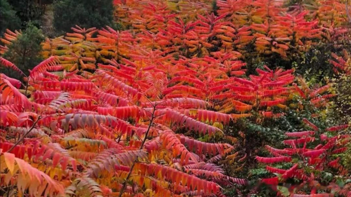 秋天中最美的景色应该是漫山遍野的斑斓红叶了。经过秋雨、秋霜的洗礼,部分草叶的颜色逐渐由绿色转变为或淡或深的黄、红颜色,把满目河山装扮得色彩斑斓,随风摇曳,美轮美奂。