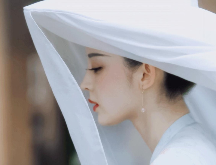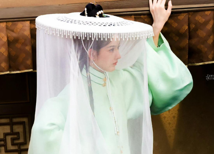 在古装作品中帷帽似乎是美人的标配,白纱遮面犹如美人隔云端,很有雾里看花的风韵。