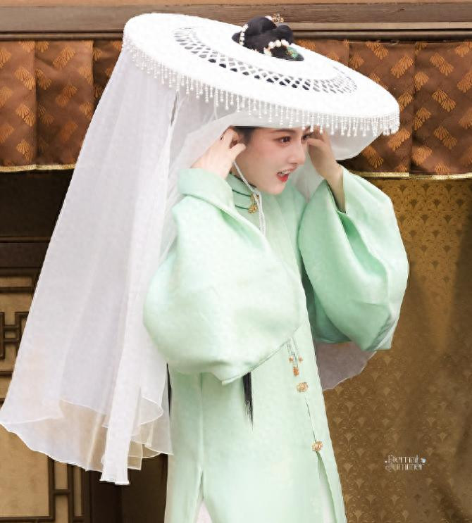 所以不少明星都尝试过帷帽造型,就像宋祖儿在《表妹万福》中的白色帷帽自带仙气,和身上雅致的绿衣完美融合,让人一眼难忘。