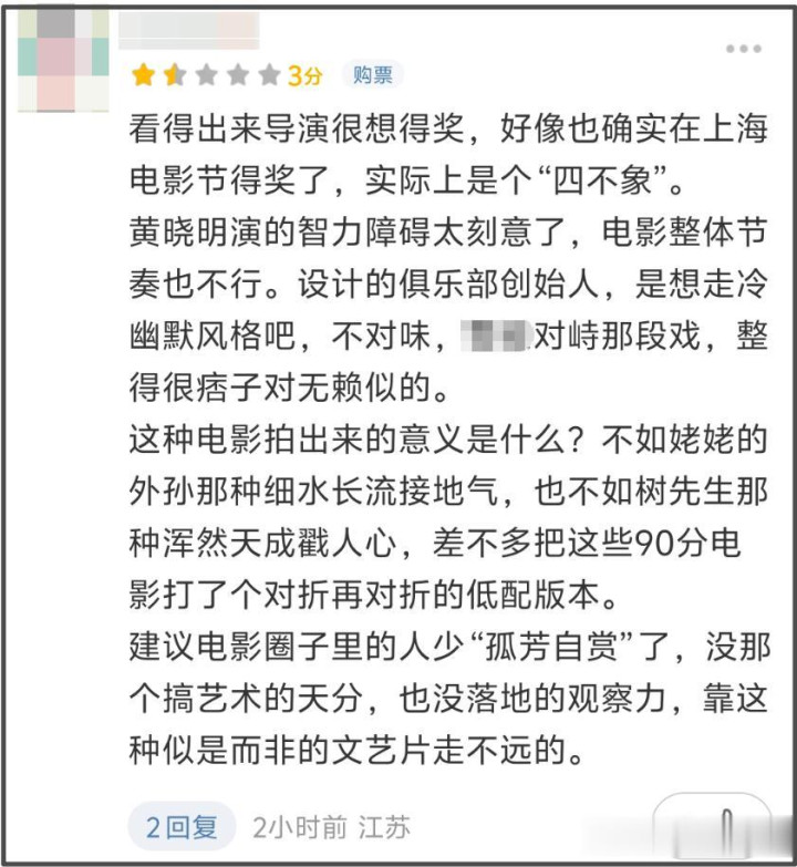 预测票房不到一千万的片子,差评几乎占一半,主演票房号召力约等于没有,市场不买账、普通观众不买账,难不成黄晓明的演技是仅评委可见?