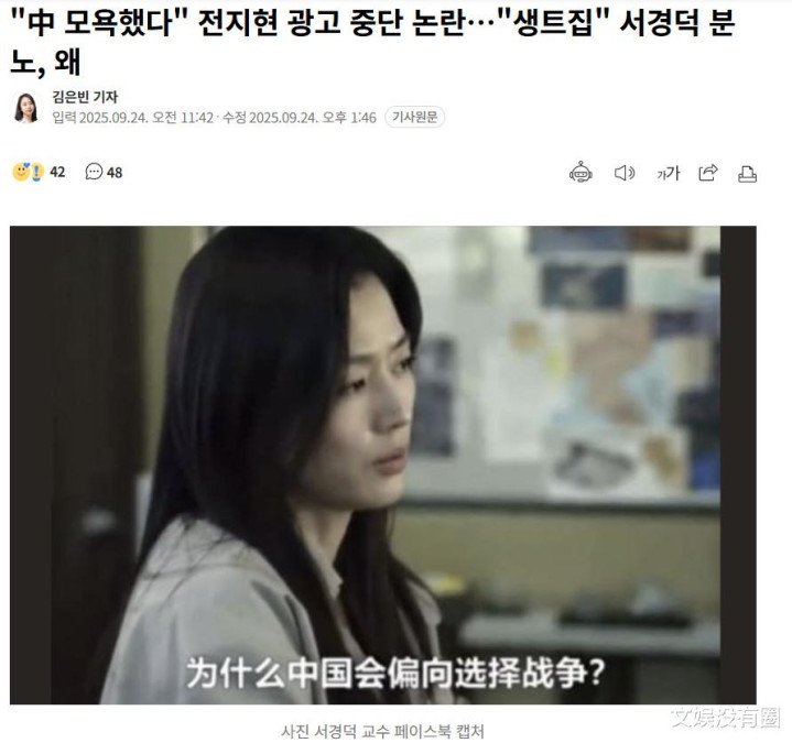 据韩国媒体报道称:近来,演员全智贤因为Disney+原创剧集《暴风圈》中的台词、剧情等问题,在中国等国家及地区的网络舆论场上,遭遇了激烈的批评。对此,韩国学者徐敬德(音译)于9月24日通过个人社交媒体发声,力挺全智贤,并指责网友“无理取闹”。