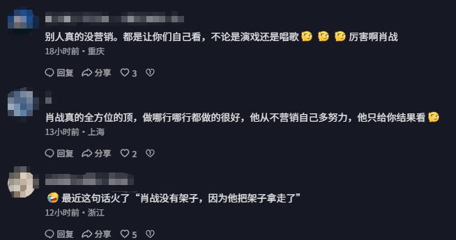 甚至还有网友调侃说“肖战没有架子,因为他把架子扛走了”。