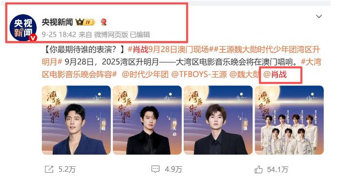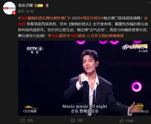 甚至连北京卫视官方都发文点赞肖战的表演。
