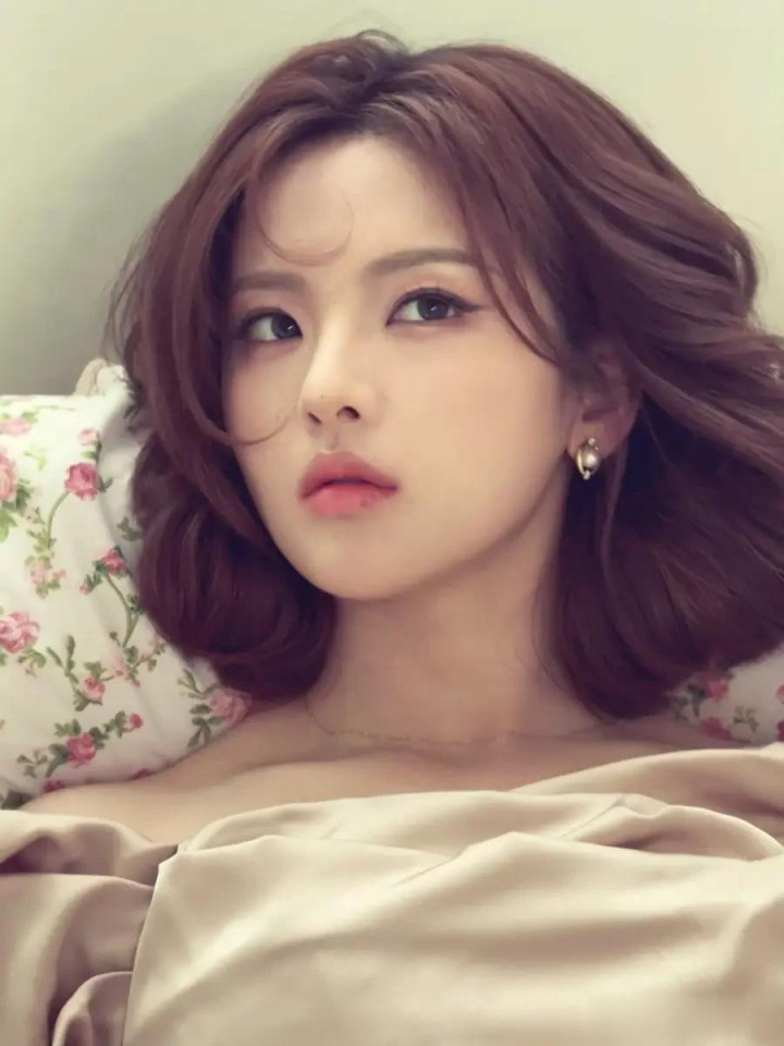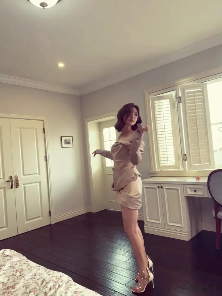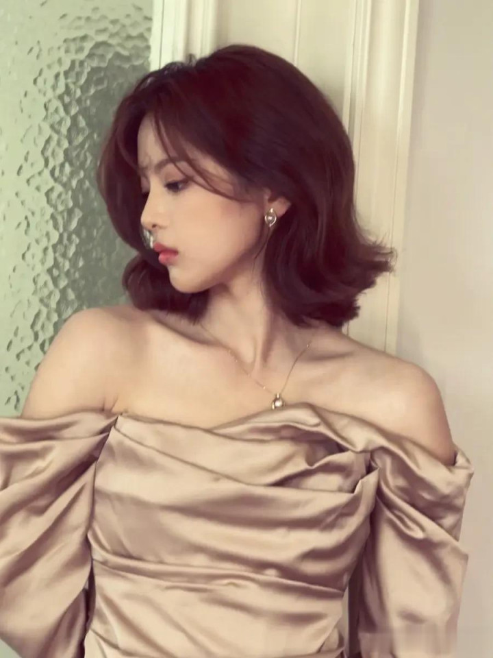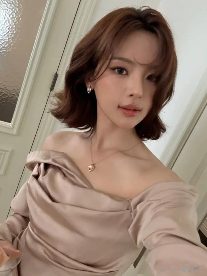 杨超越穿裸色露肩裙优雅精致 留微卷短发港风满满