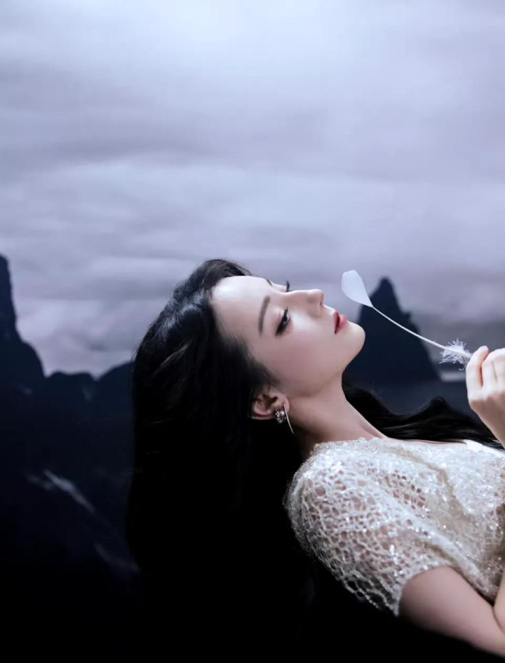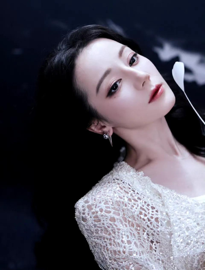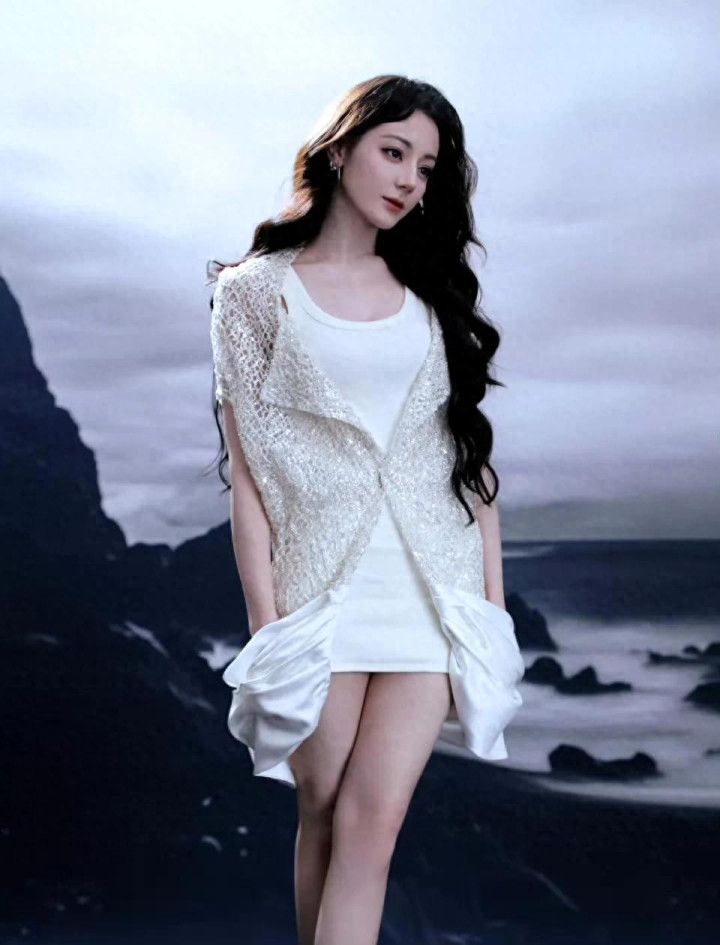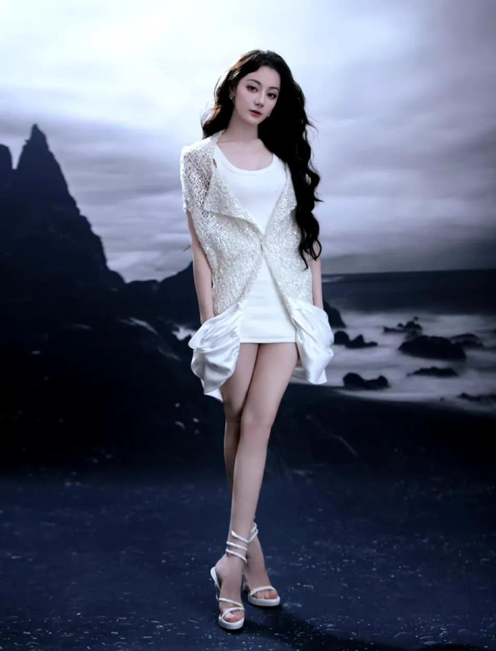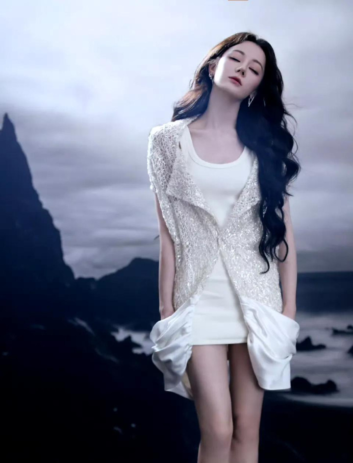 迪丽热巴 白色套装写真拍照