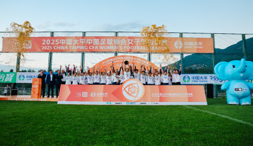 10月20日,2025中国太平中国足协女子甲级联赛收官战暨闭幕式在云南玉溪高原足球训练基地落下帷幕。中国足协党委委员、中国福特宝足球产业发展公司总经理李久全,中国足协女子足球部副部长赵勇及太平人寿云南分公司总经理张骏为女甲联赛冠军广西平果呗侬女足颁奖。