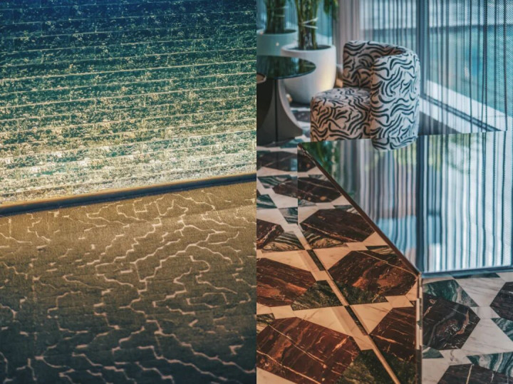 泳池的设计,将“运河”的意象引入室内,畅游其中,看波光摇曳,仿佛在穿越了千年时光的运河碧波里。