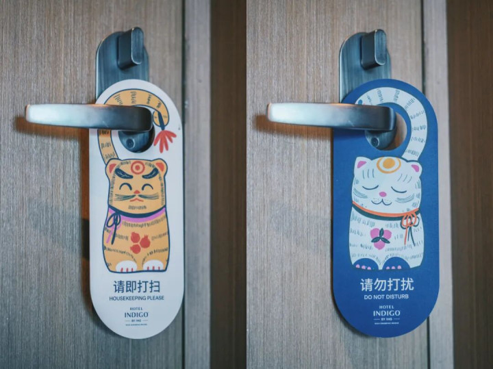 还有无锡人自己的“招财猫”——蚕猫形象,悄悄挂在客房的门把手上。