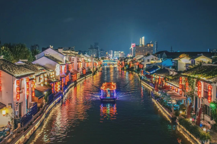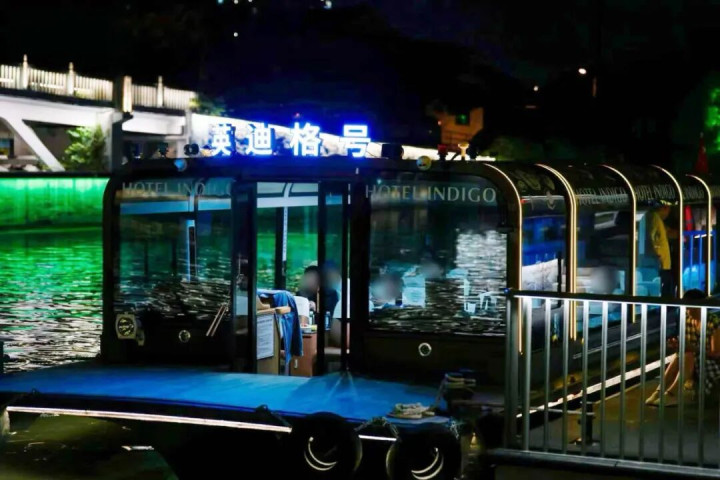 晚上还可以体验江南古运河行浸式光影夜游,英迪格还有自己的冠名船。