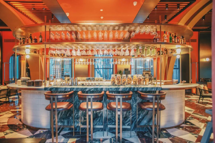 像小吧台、屏风的图样,都是从《梁溪揽胜图》和《古运河梁溪风情图》中汲取灵感,让整个空间多了份恰到好处的古韵。