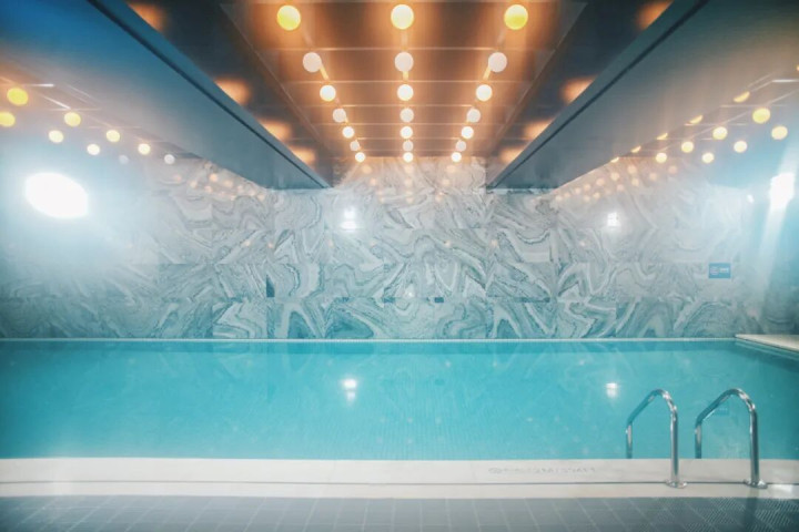 吃完饭可以去负一楼的泳池、健身房,这个空间也将运河的灵动与活力延续了。