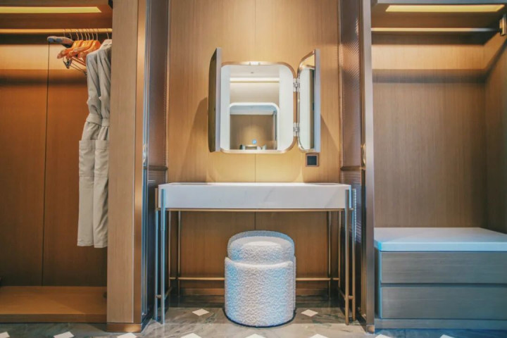 房间很宽敞,设置了沙发休憩区,还有独立的化妆台空间。