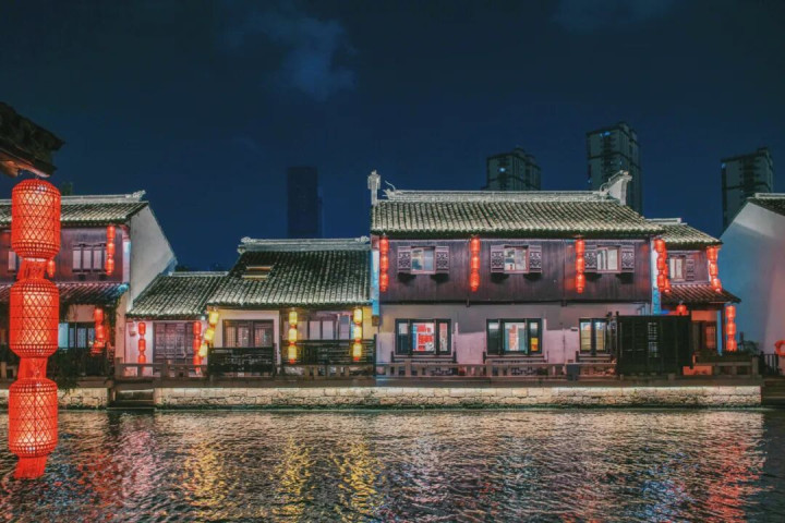 在这里能感受到“富贵迷人眼”的繁华江南,“倚河而居,临窗面水”的传统民居格局依旧完整,檐下灯笼连缀如珠串。这里是前几年大火的《梦华录》取景地之一,也是去年央视春晚无锡分会场的重头戏之一。